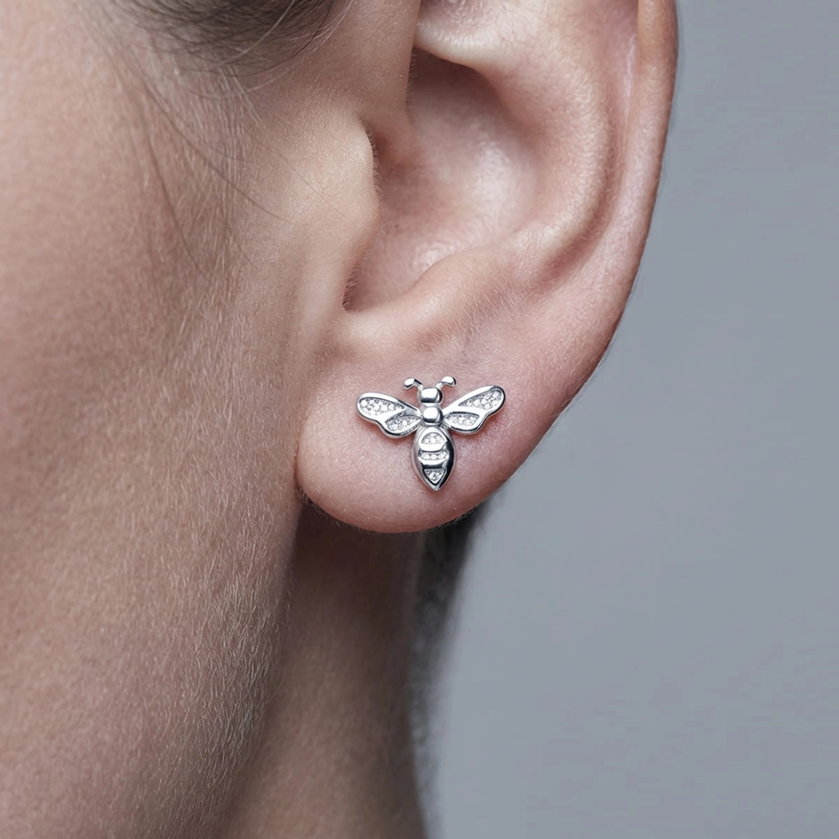 Srebrne Kolczyki Srebro 925 - Rodowane, Pszczółki, Pszczoła, Na Prezent