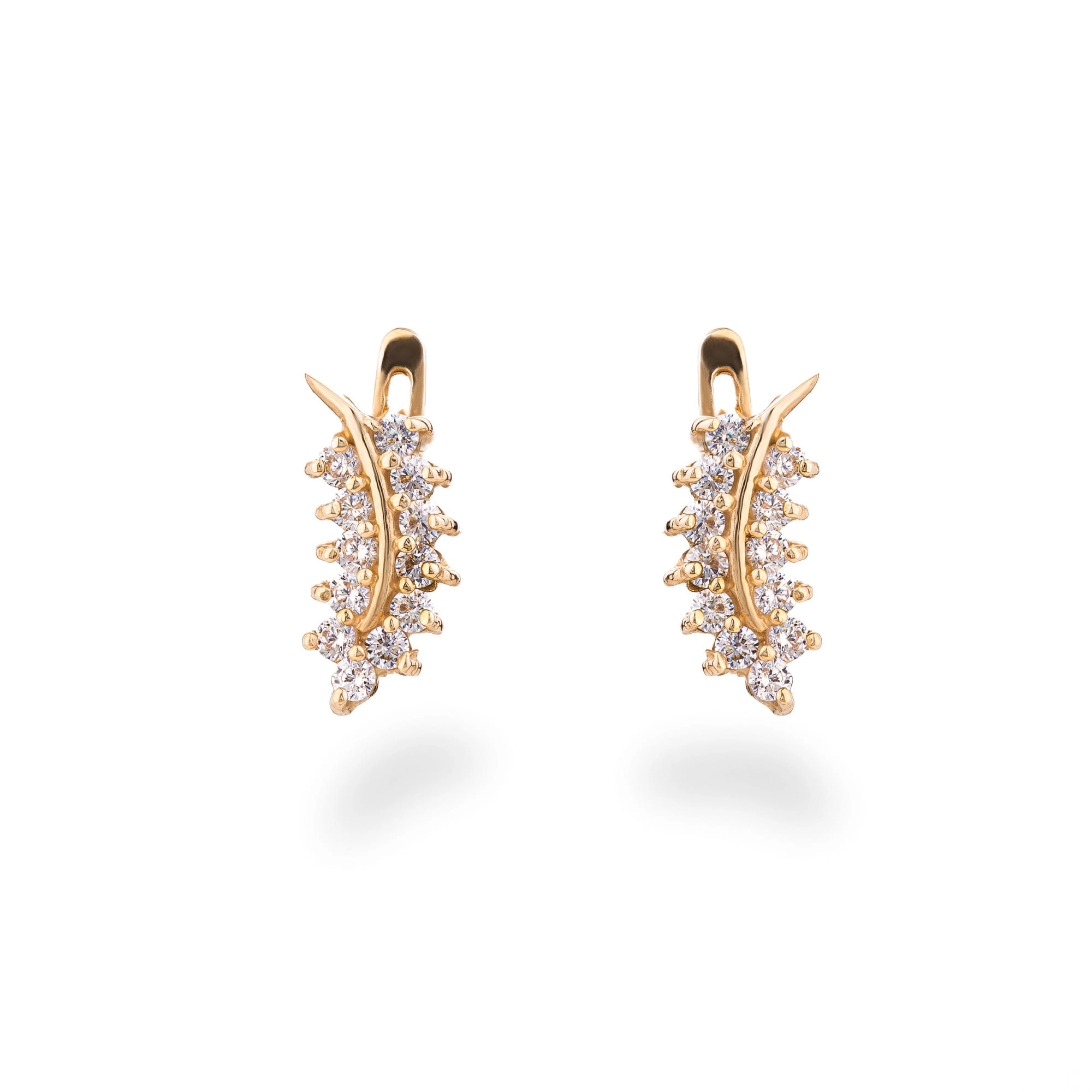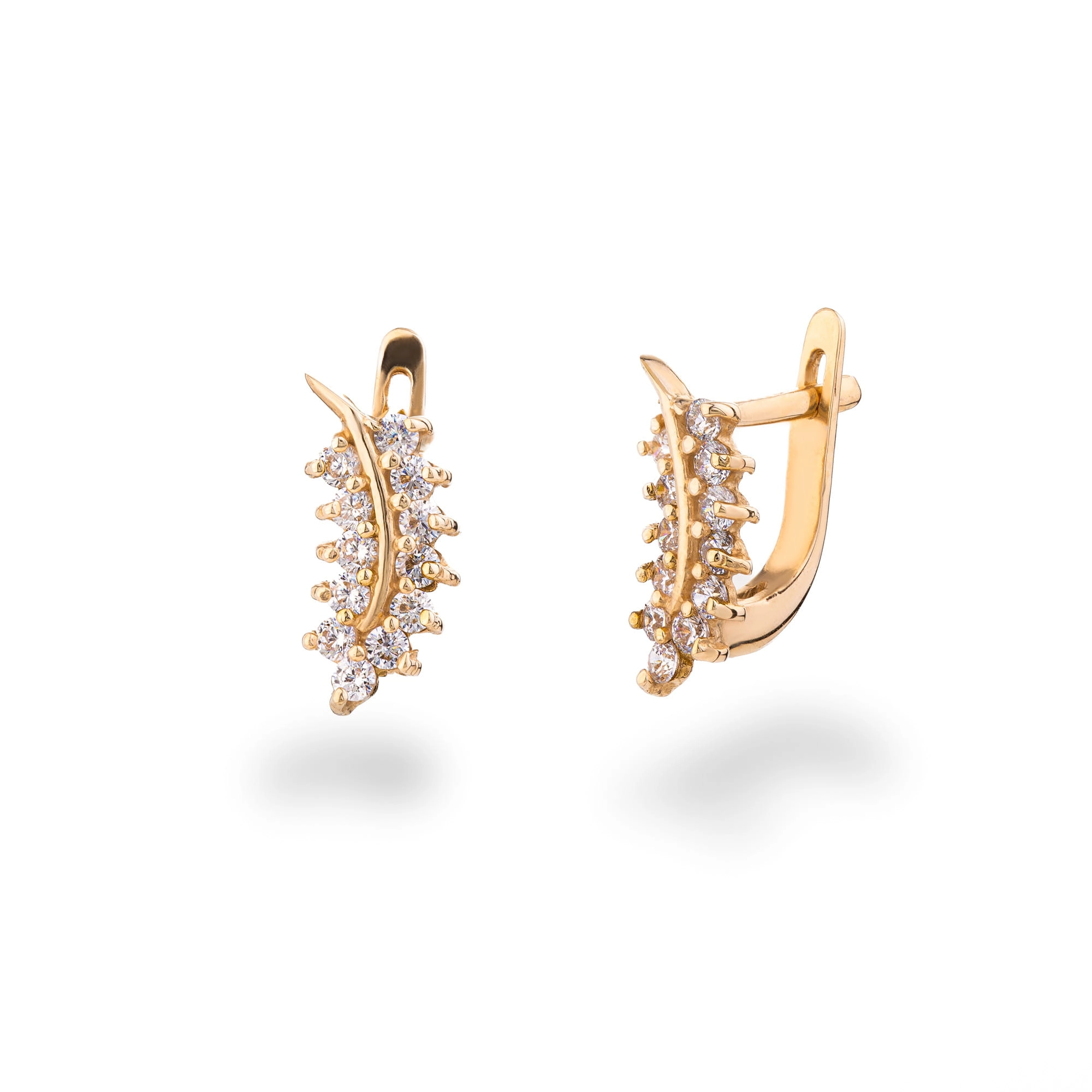 Urocze kolczyki Listek Złoto p.585 z cyrkoniami (14K)