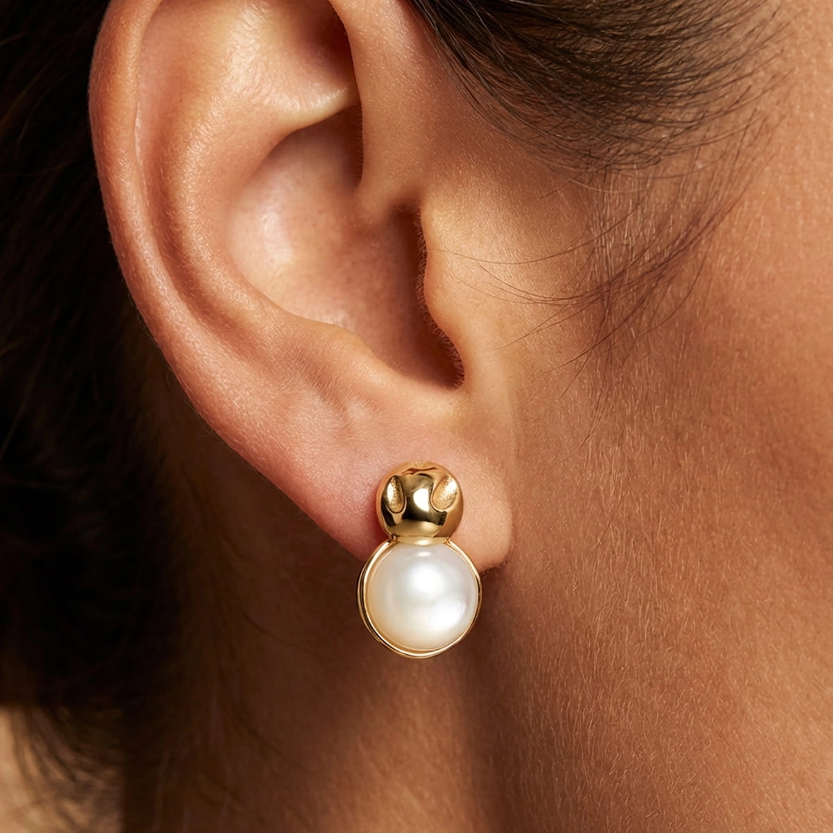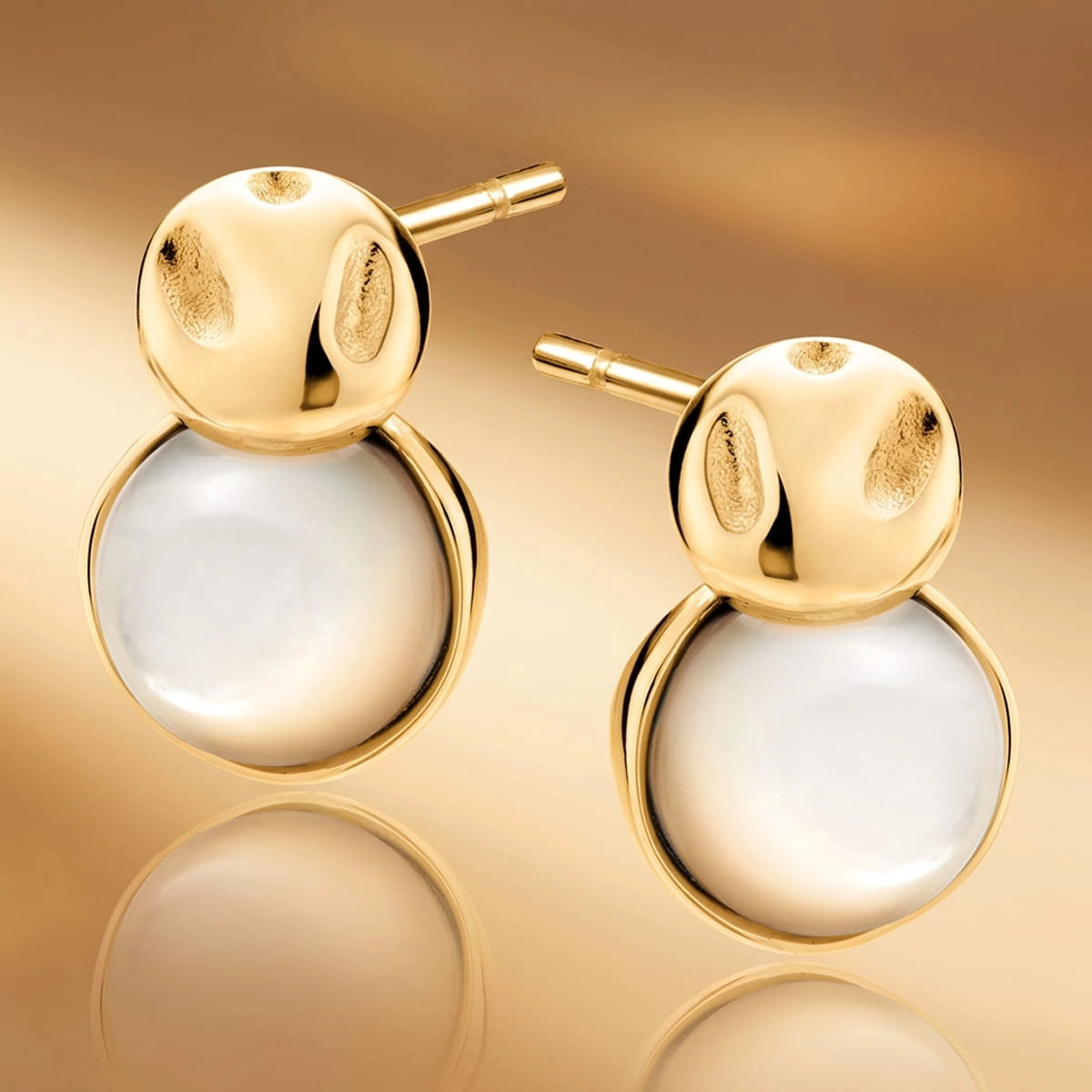 Wiszące KOLCZYKI SREBRNE 925 Pozłacane, kolor Złoty, Sztyft, Masa Perłowa