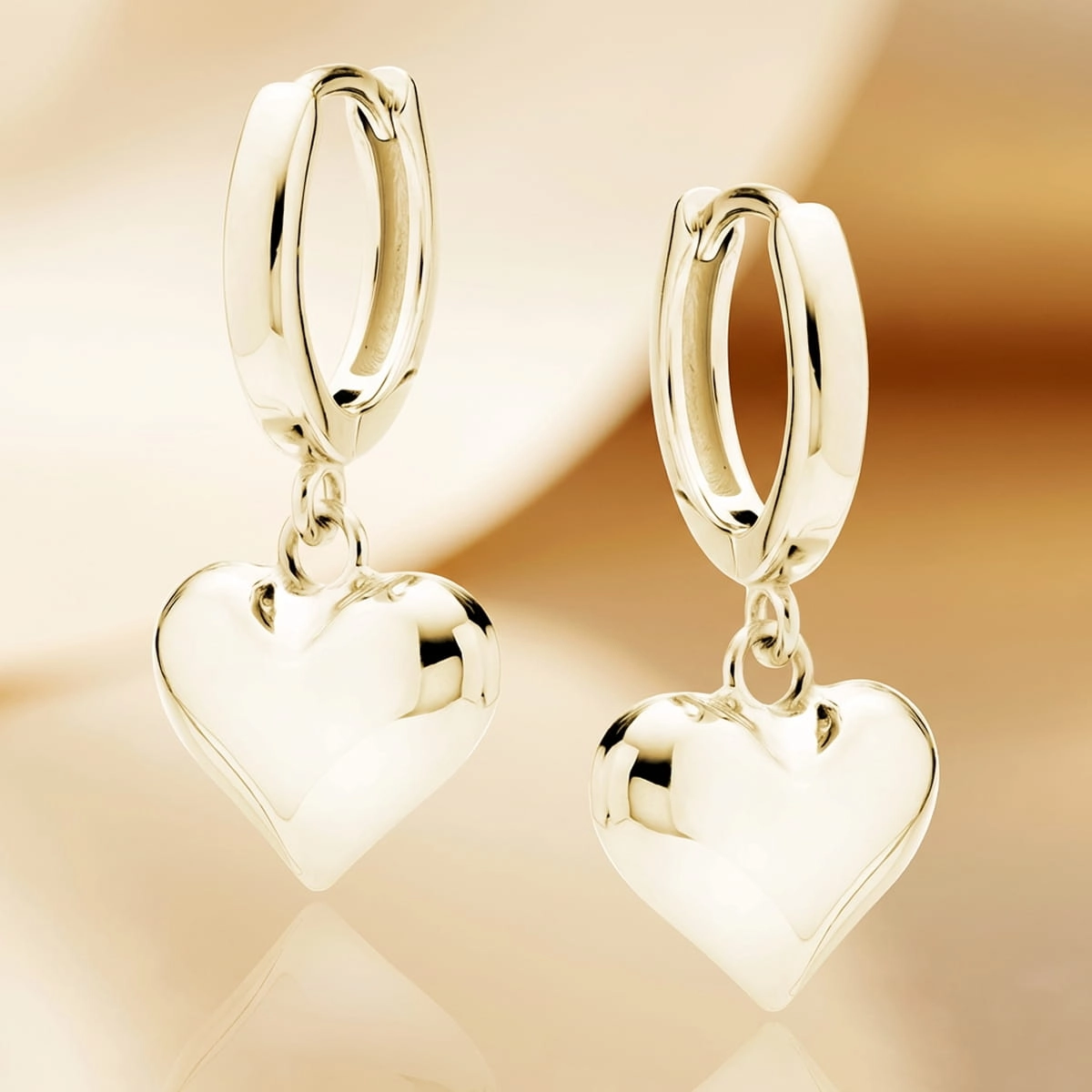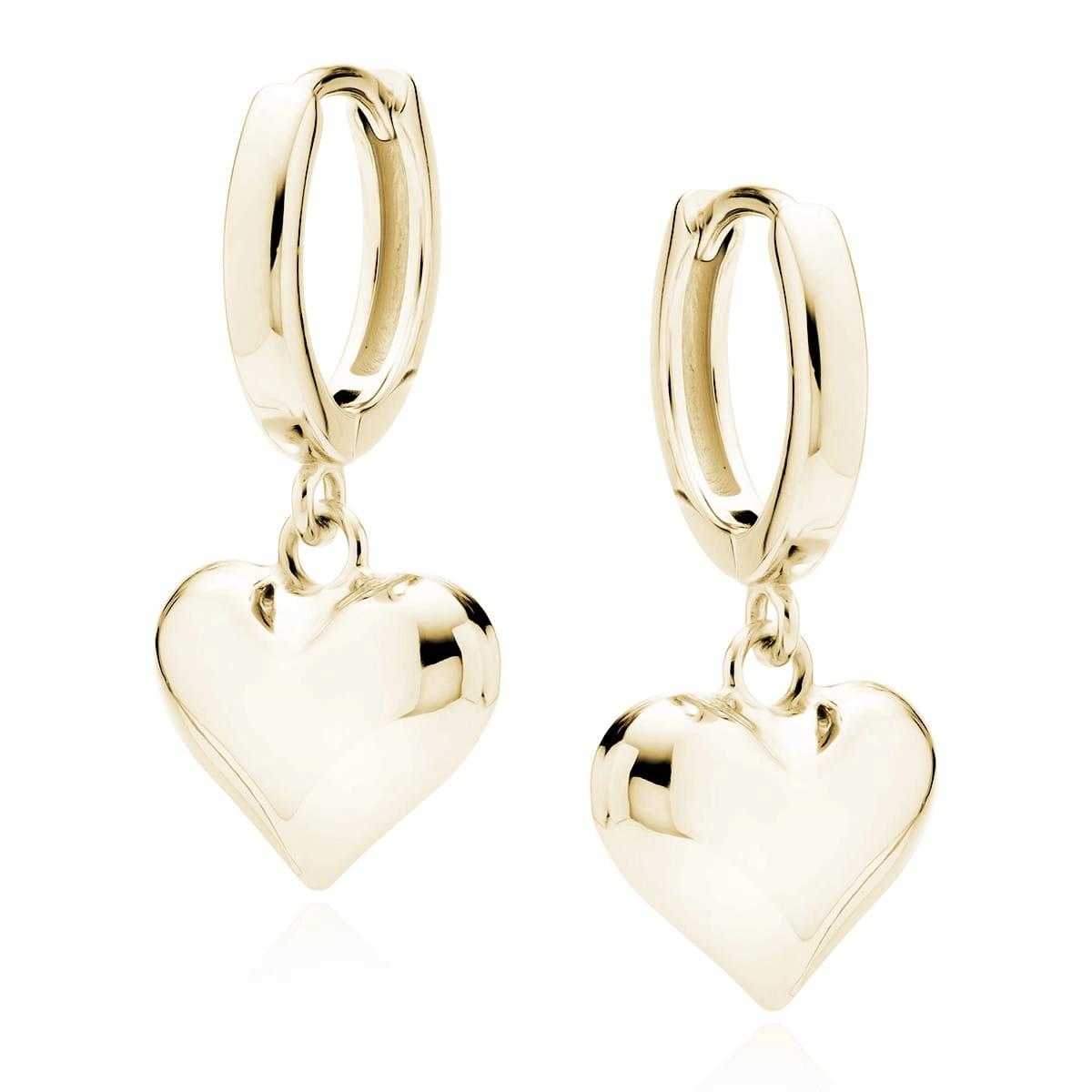 Wiszące Srebrne Kolczyki SERCA - Srebro 925 Pozłacane, Błyszczące, Gładkie