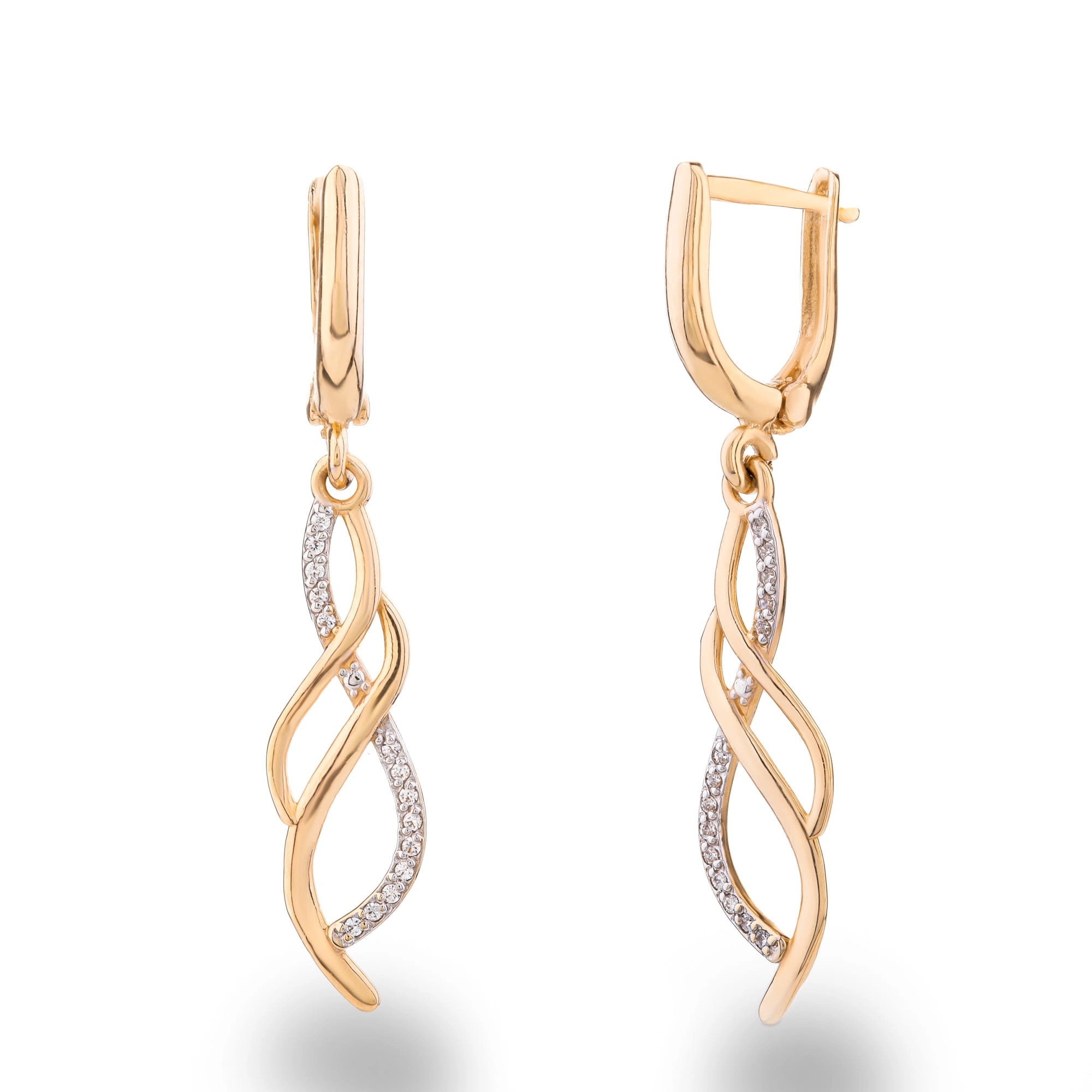 Wiszące złote kolczyki p.585 z cyrkoniami (14K)