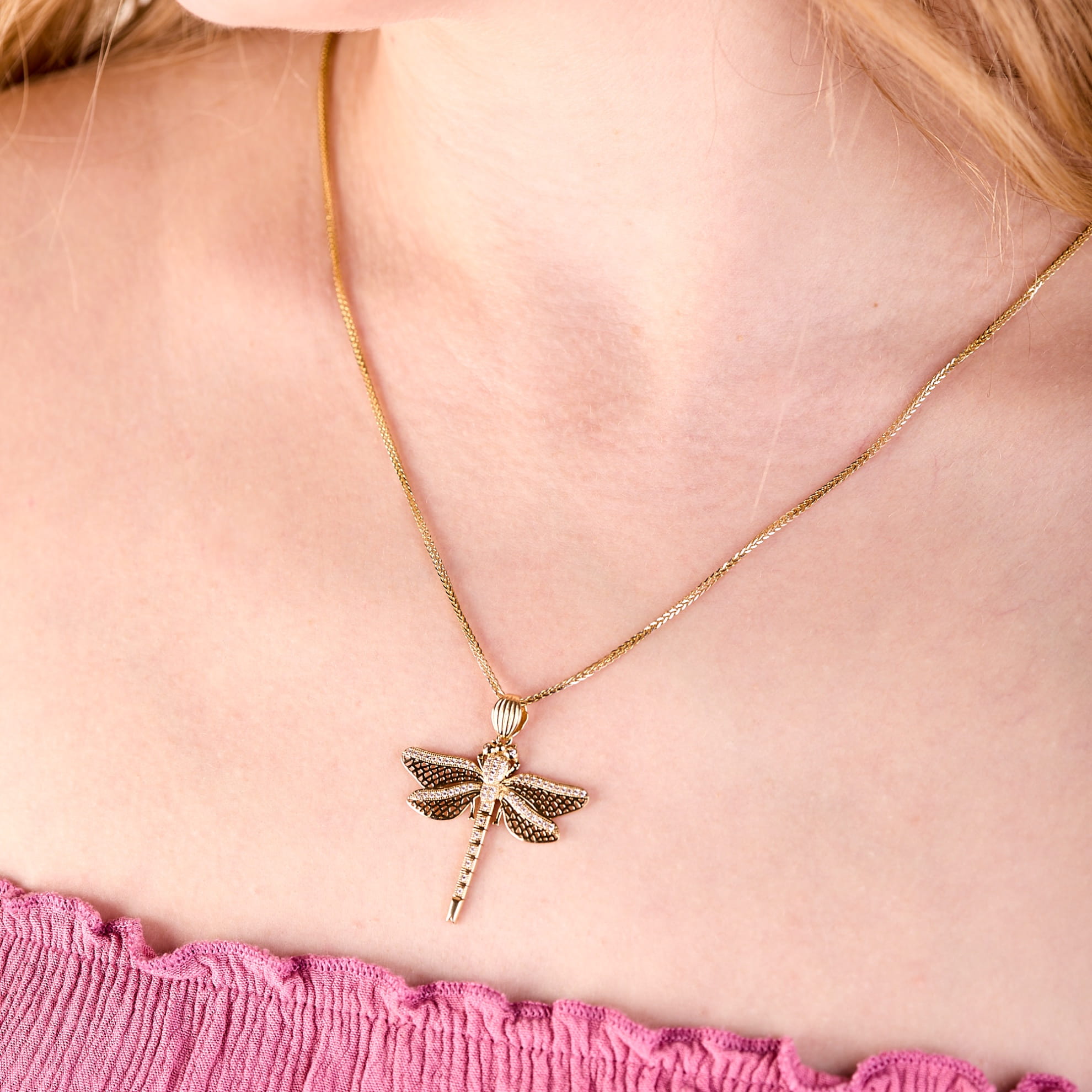 ZAWIESZKA DAMSKA ZŁOTA WAŻKA Z CYRKONIAMI OWADY ZŁOTO 585 NA PREZENT