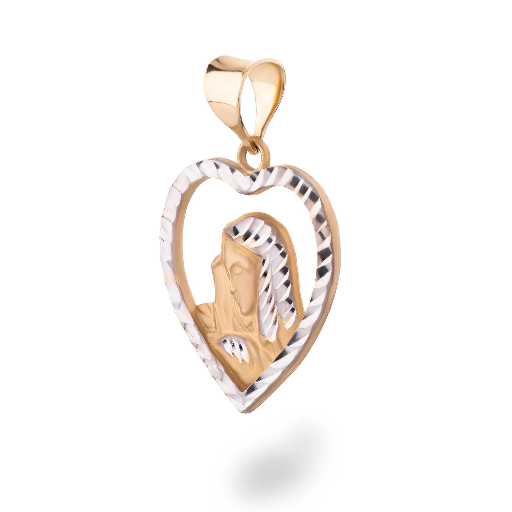 ZŁOTA MATKA BOSKA ZAWIESZKA SERCE ZŁOTY MEDALIK BIAŁE ZŁOTO 585 NA PREZENT