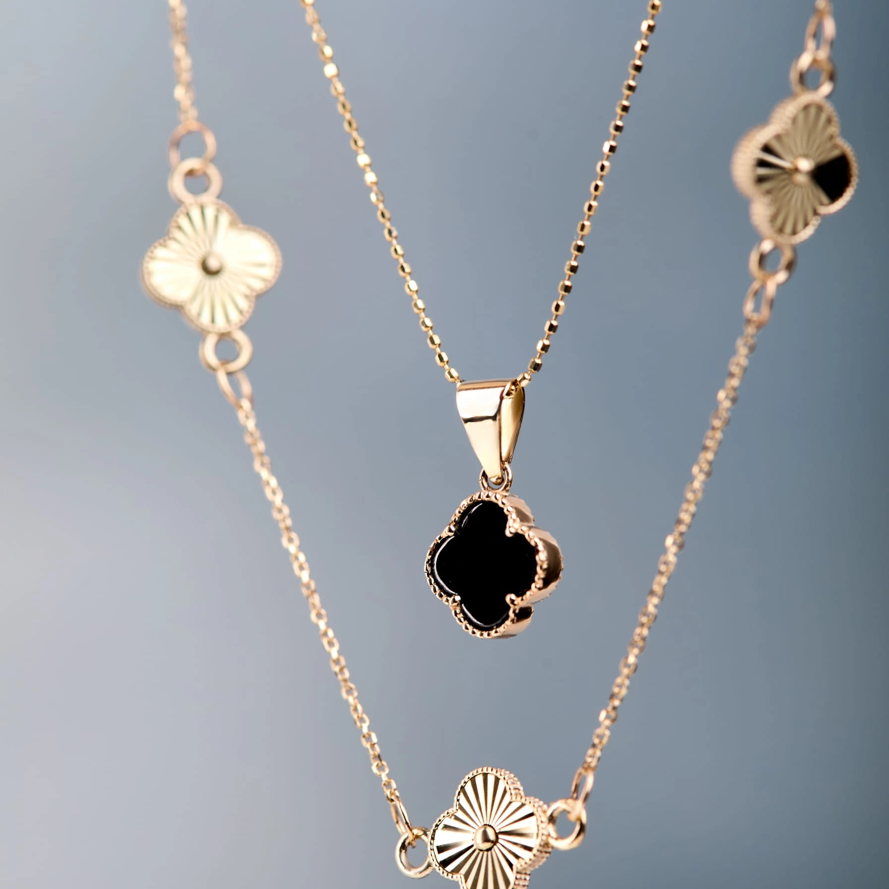ZŁOTA ZAWIESZKA CZARNA KONICZYNKA OPAL DAMSKA ZŁOTO 585 CELEBRYTKA DLA NIEJ