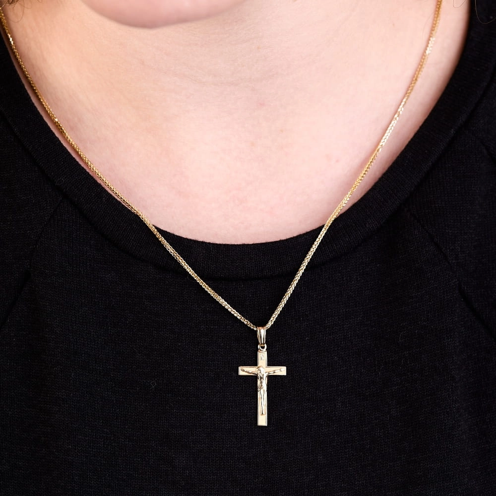 ZŁOTA ZAWIESZKA KRZYŻ ZŁOTY JEZUS NA KOMUNIĘ PREZENT PAMIĄTKA ZŁOTO 585