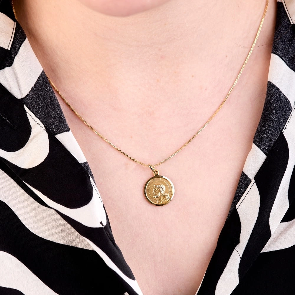 ZŁOTA ZAWIESZKA MEDALIK JEZUS ZŁOTY 585 GRAWER Z TYŁU GRATIS NA PAMIĄTKĘ