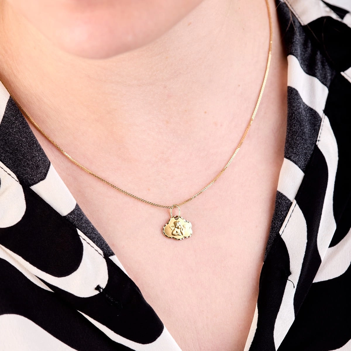 ZŁOTA ZAWIESZKA MEDALIK ZŁOTY ANIOŁEK PAMIĄTKA NA CHRZEST ZŁOTO 585 PREZENT