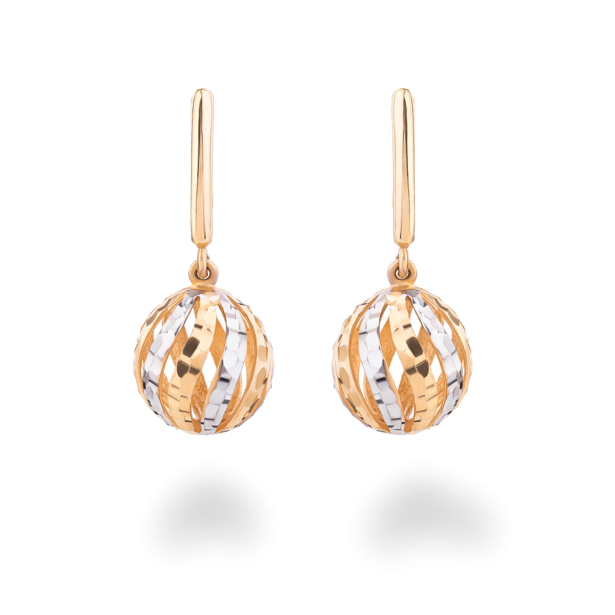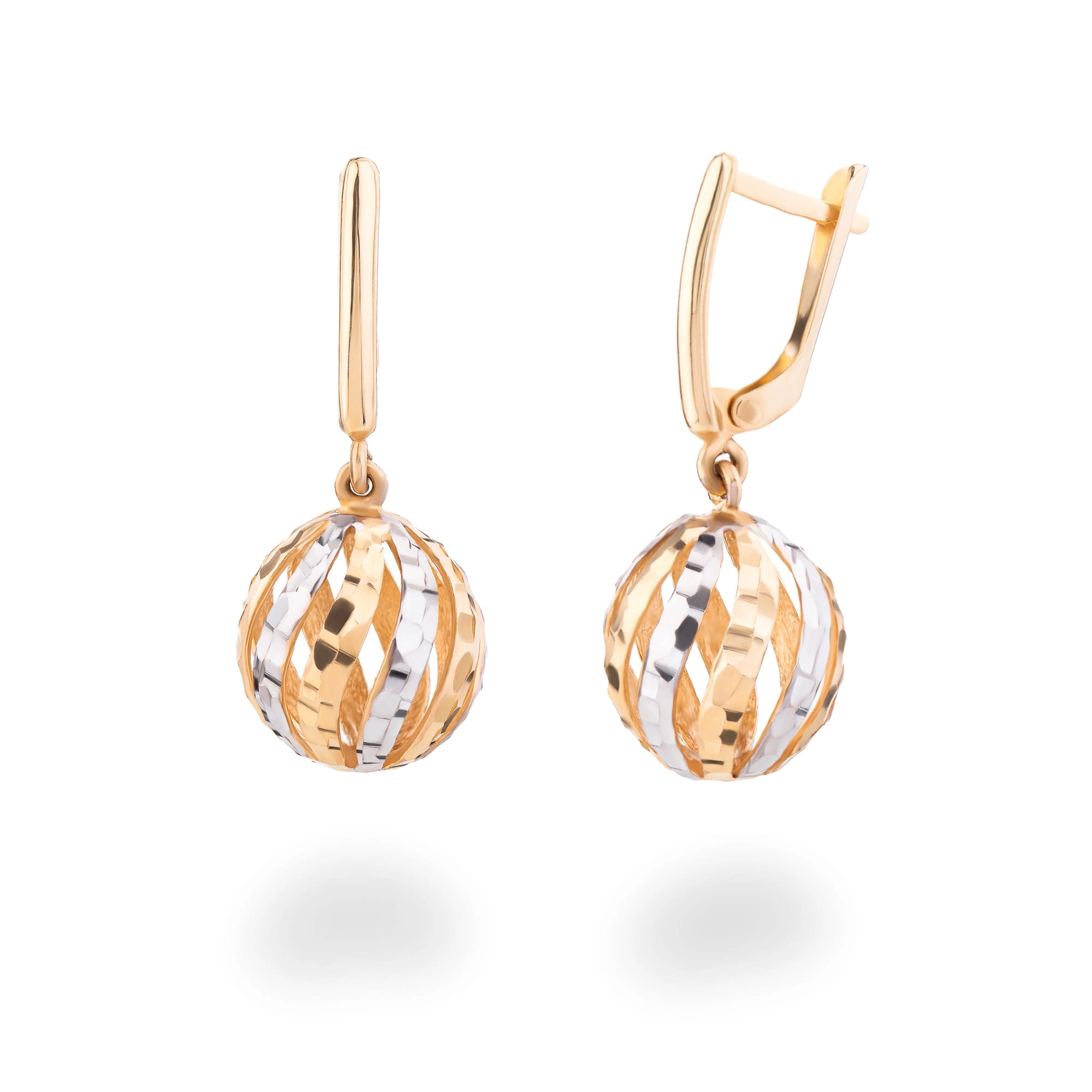 ZŁOTE KOLCZYKI KULE WISZĄCE ZŁOTO 585 BIAŁE ZŁOTO 585 ZAPIĘCIE ANGIELSKIE
