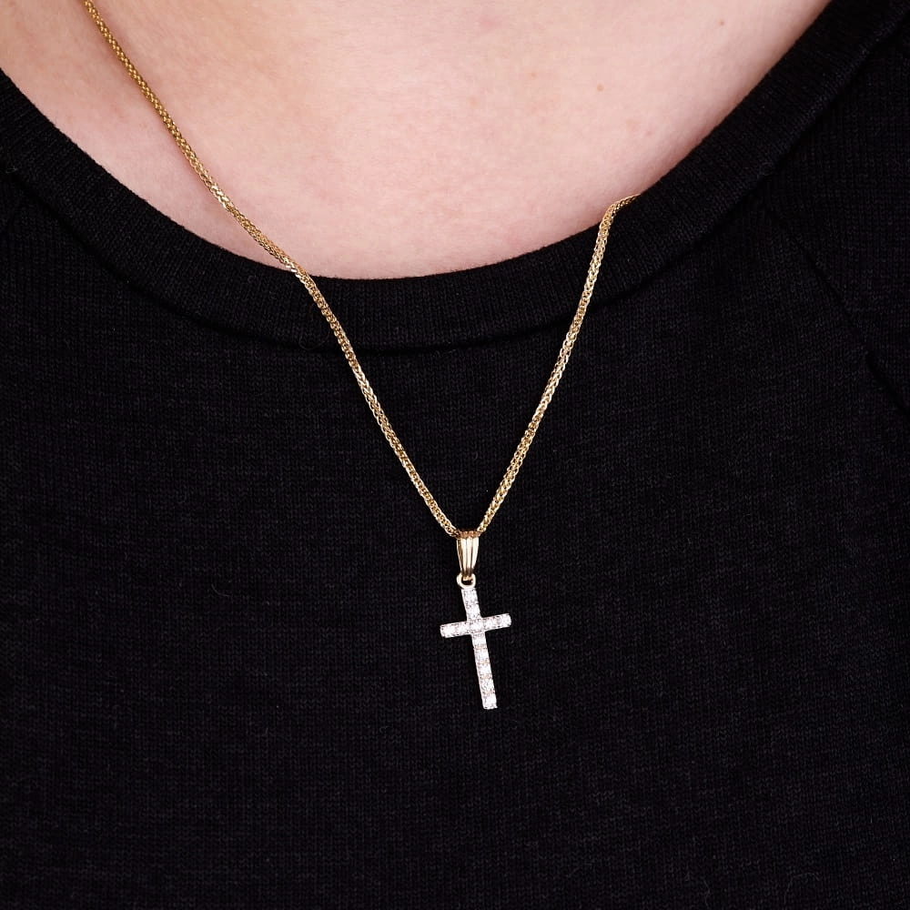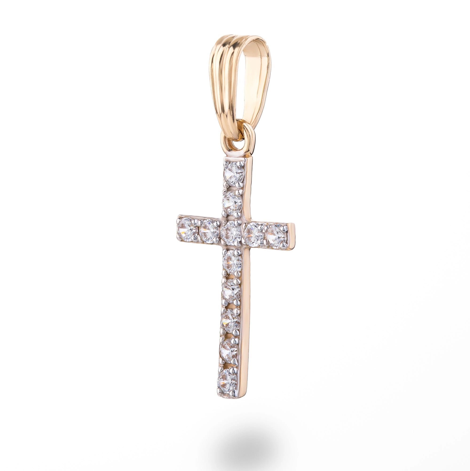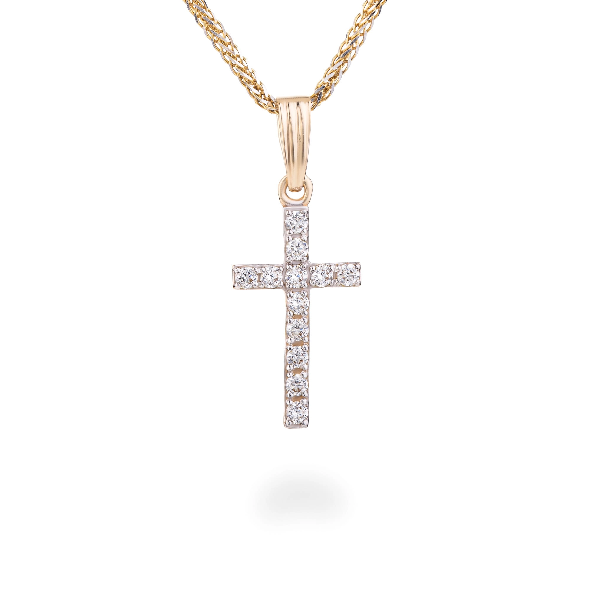 ZŁOTY KRZYŻYK Z CYRKONIAMI ZŁOTA ZAWIESZKA DAMSKA ZŁOTO 585 KRZYŻ PREZENT