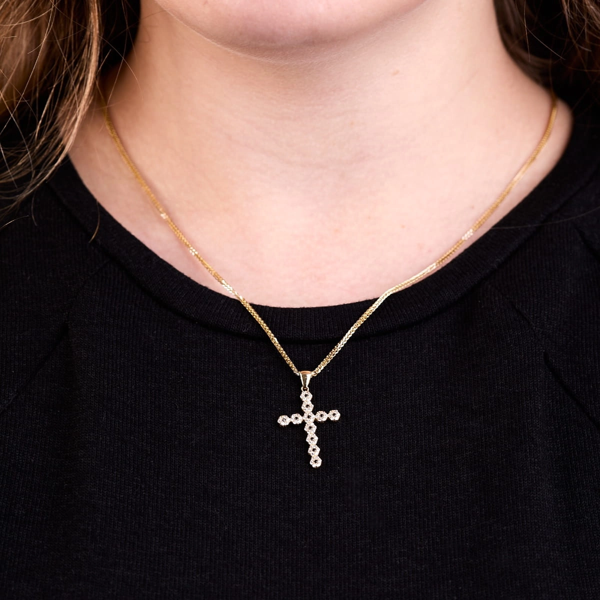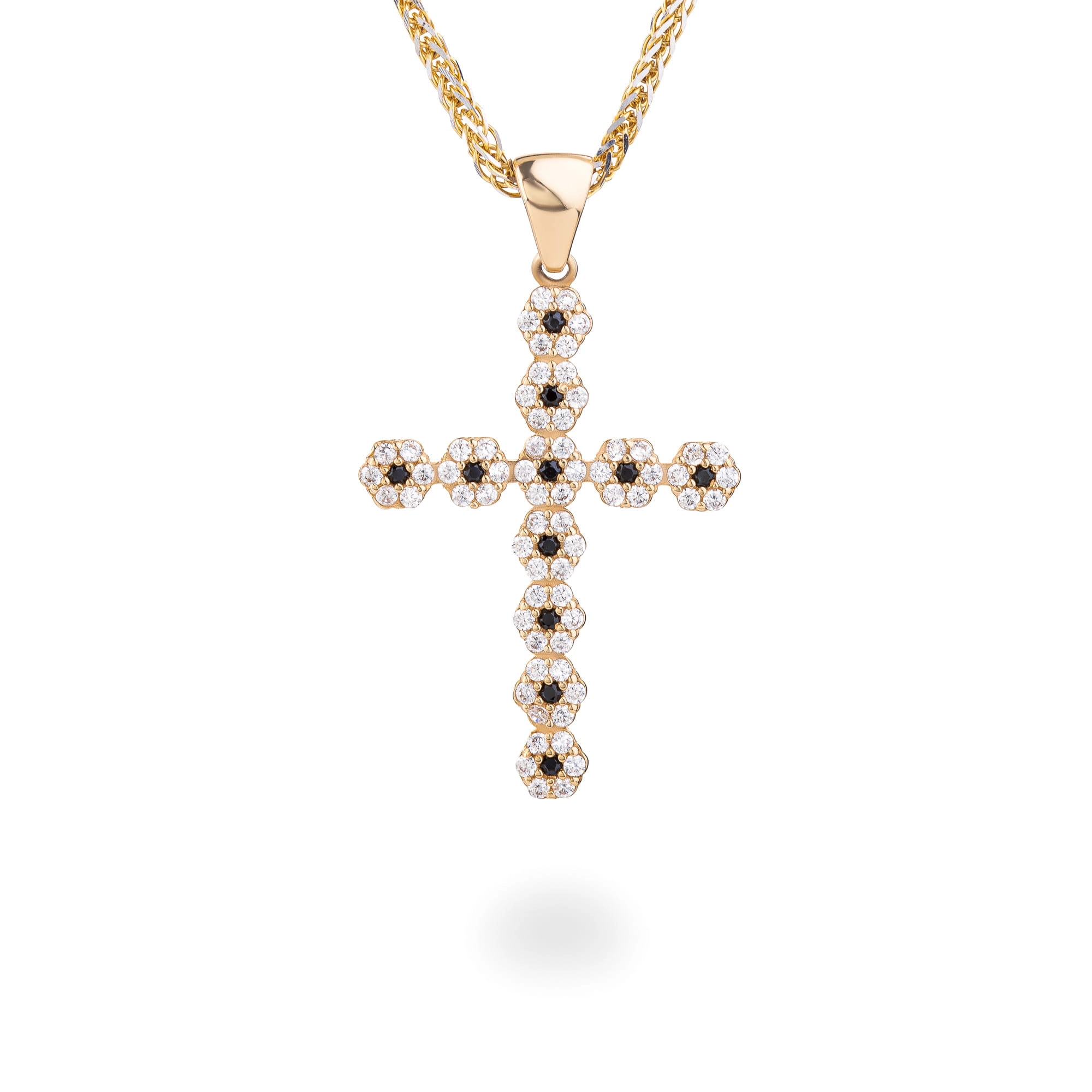 ZŁOTY KRZYŻYK ZAWIESZKA ZŁOTA 585 Z CYRKONIAMI KRZYŻ MEDALIK ZŁOTO DLA NIEJ