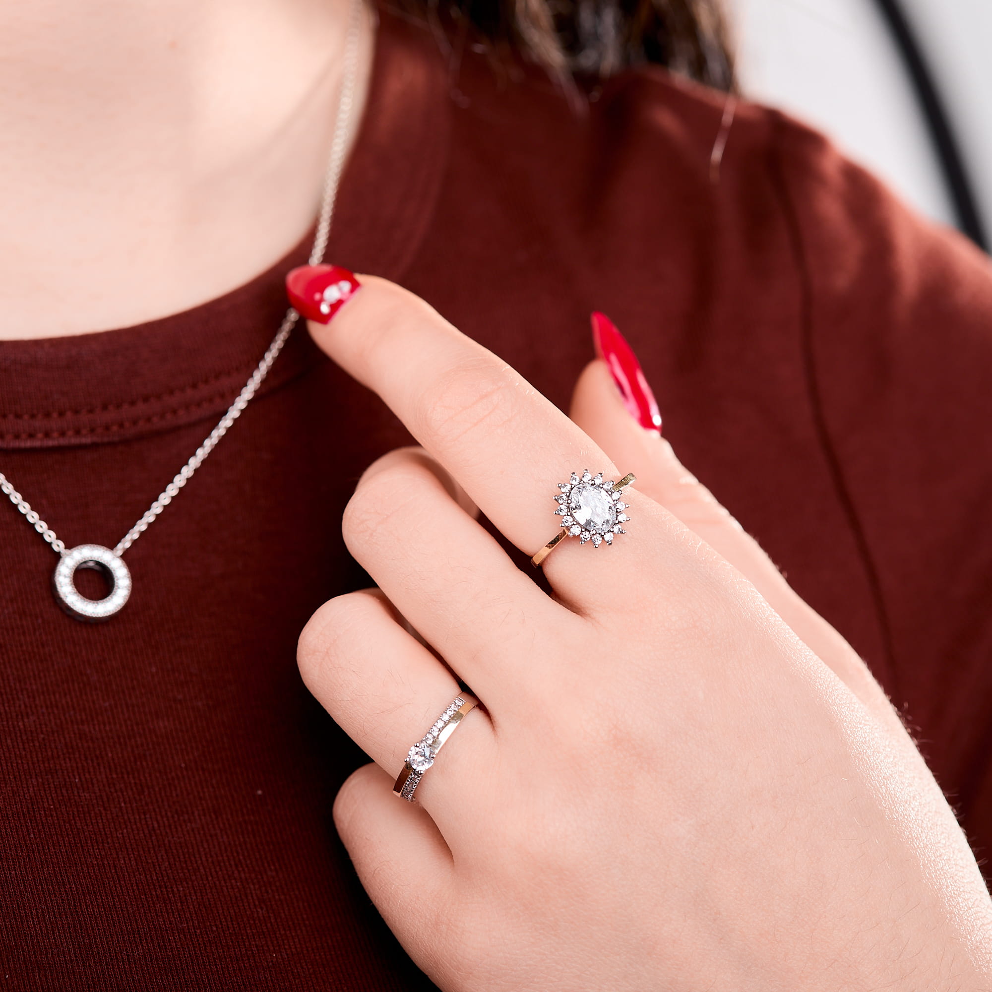 ZŁOTY PIERŚCIONEK SREBRNY r.16 SREBRO 925 ZE ZŁOTA 375 CYRKONIE ELEGANCKI