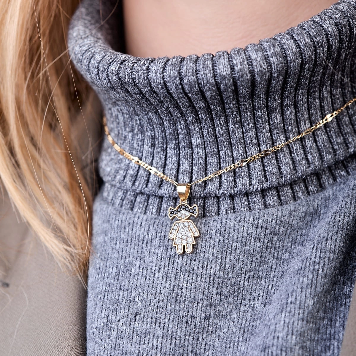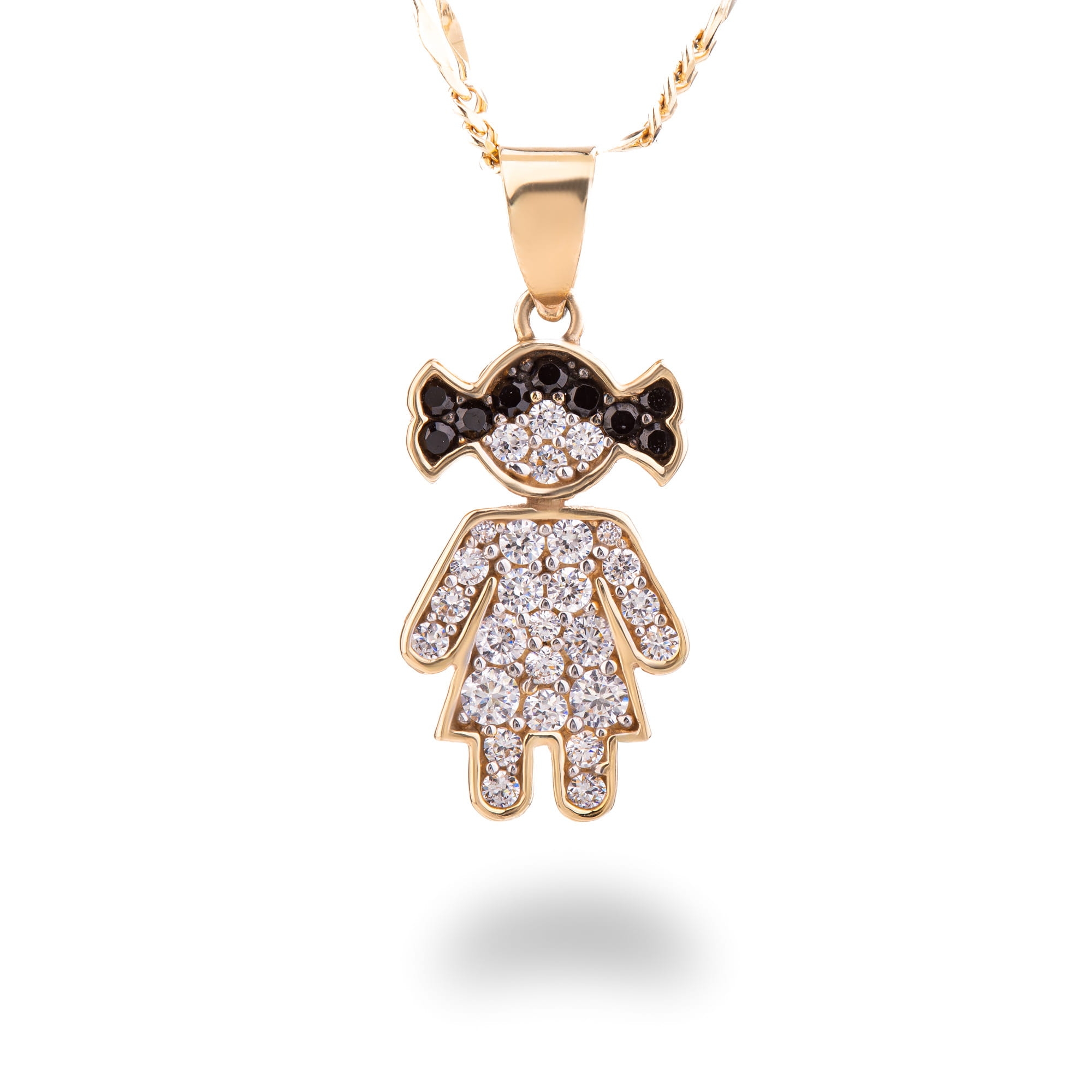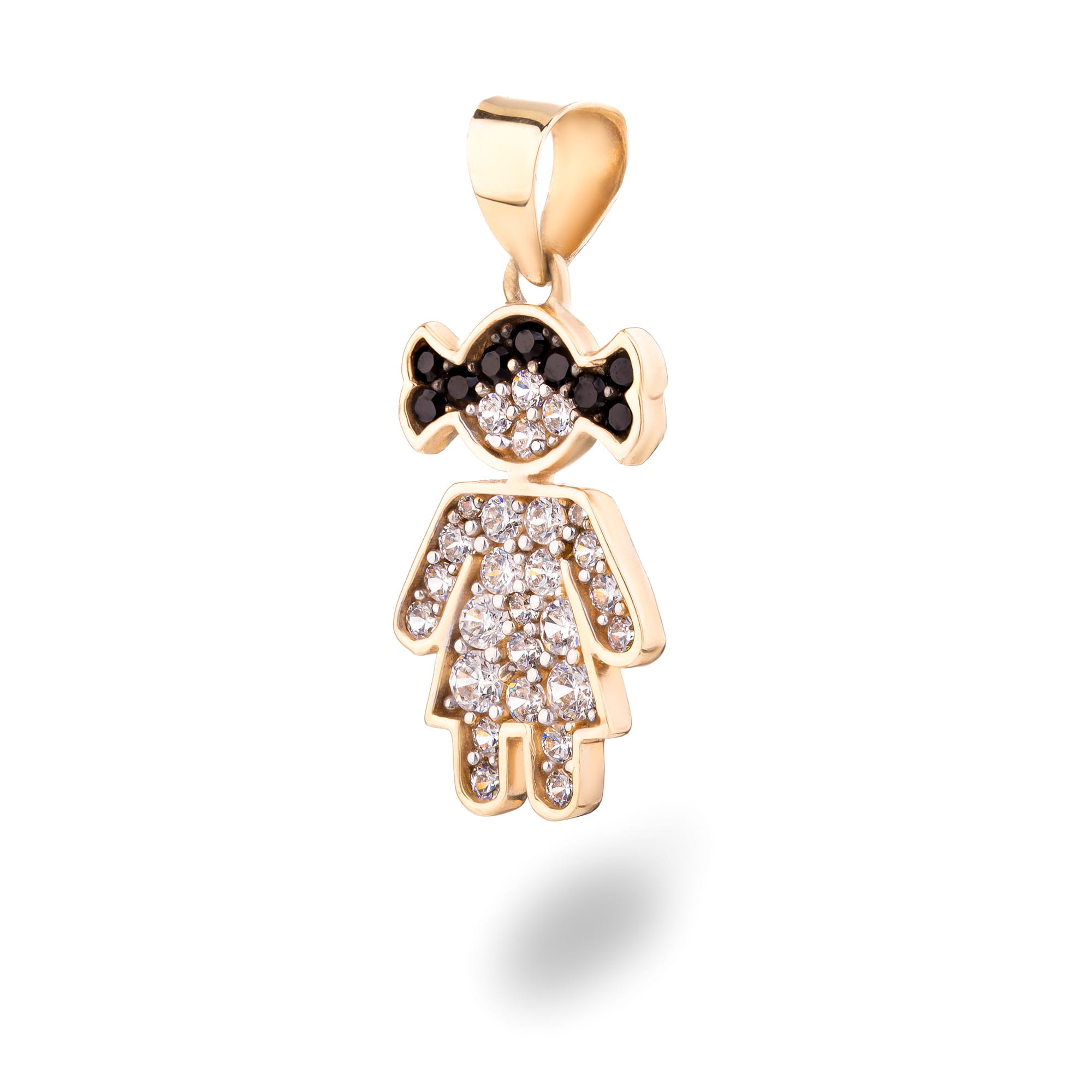 Zawieszka dziewczynka złota 585 (14K) z cyrkoniami czarnymi