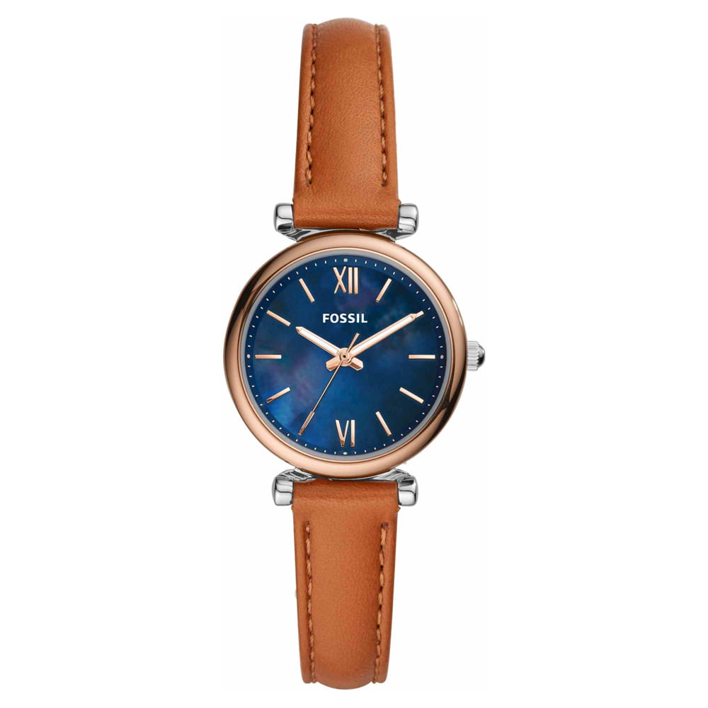 Model ten zachwyca wyrafinowaną paletą barw. Zegarek Damski FOSSIL z serii Carlie Mini łączy ciepły odcień Różowego Złota (Rose Gold) na kopercie z chłodnym, Granatowym kolorem tarczy. Ten kontrast sprawia, że zegarek jest niezwykle czytelny i elegancki. Koperta o średnicy 28 mm jest drobna i dyskretna, idealnie pasując na szczupłe nadgarstki.