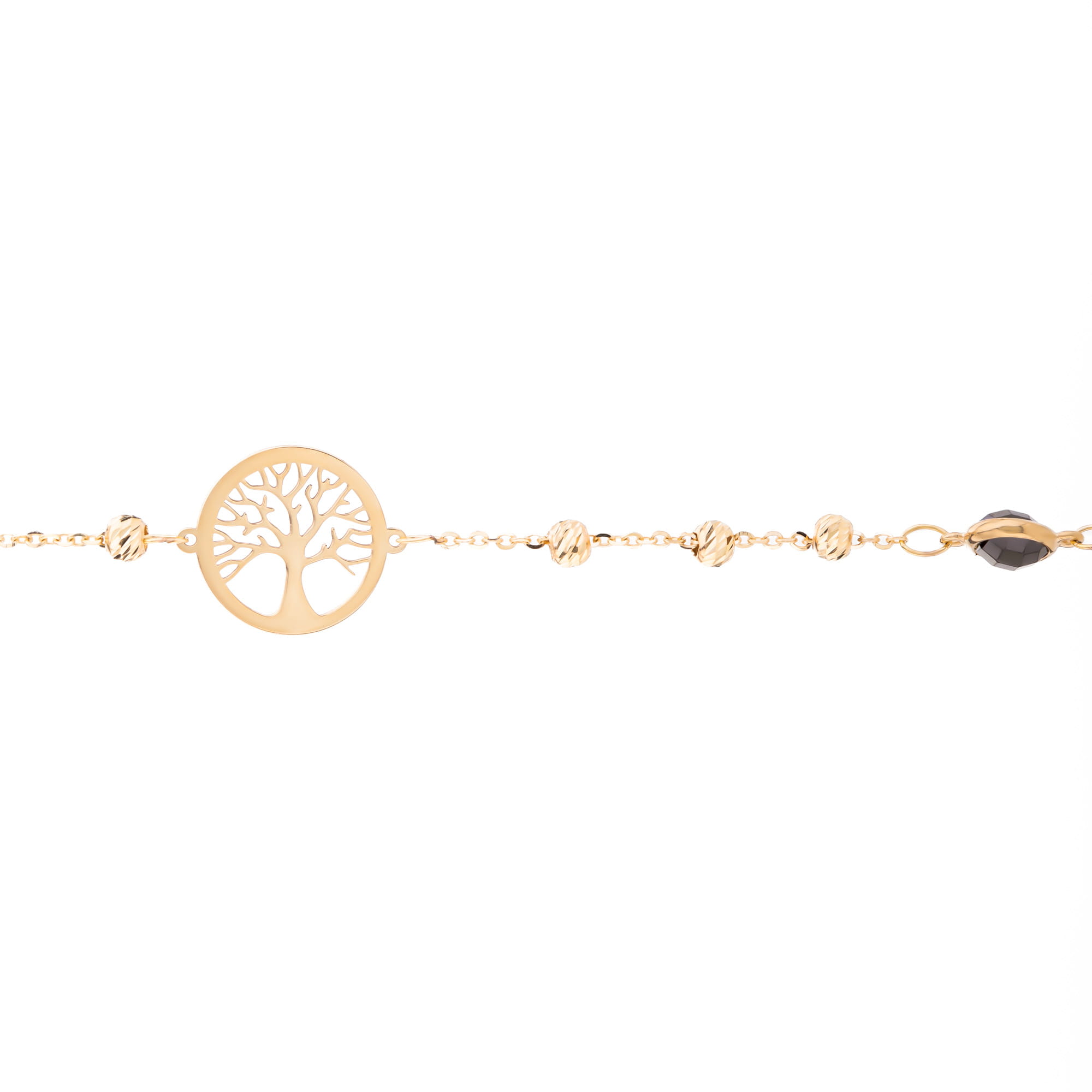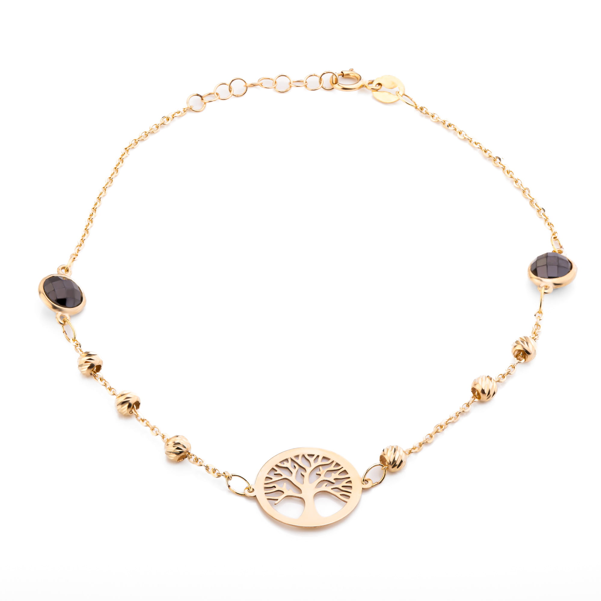 Złota bransoletka celebrytka z drzewem życia - złoto 585 (14K) z cyrkoniami