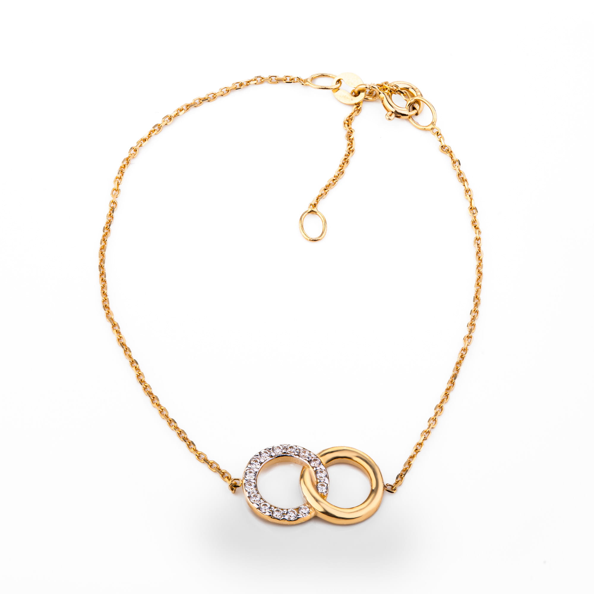Złota bransoletka z cyrkoniami w białym złocie złoto 585 14K złote kółka
