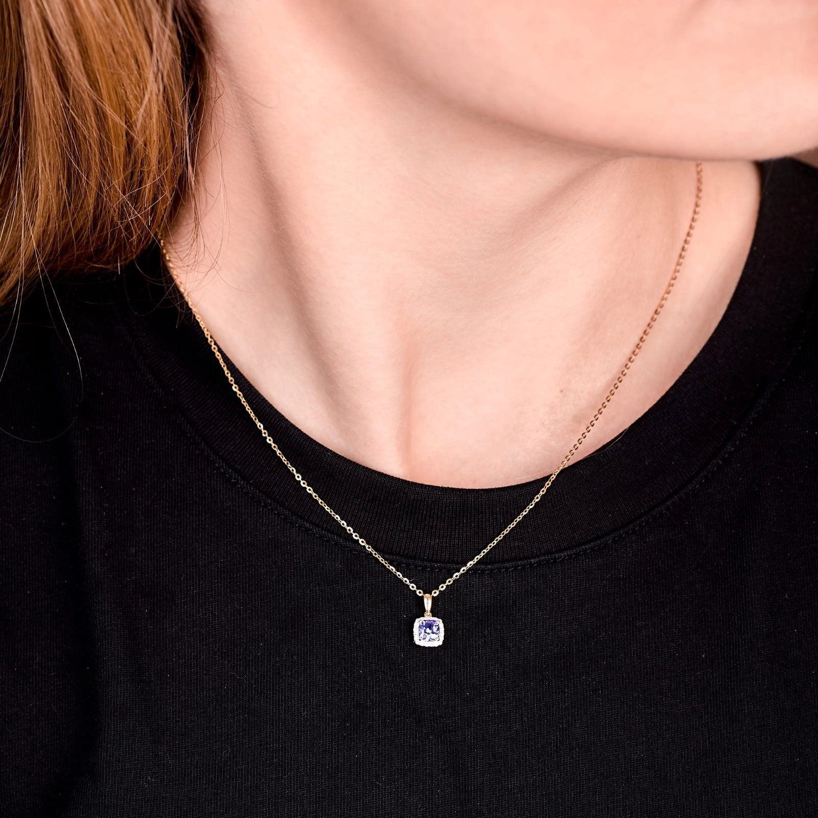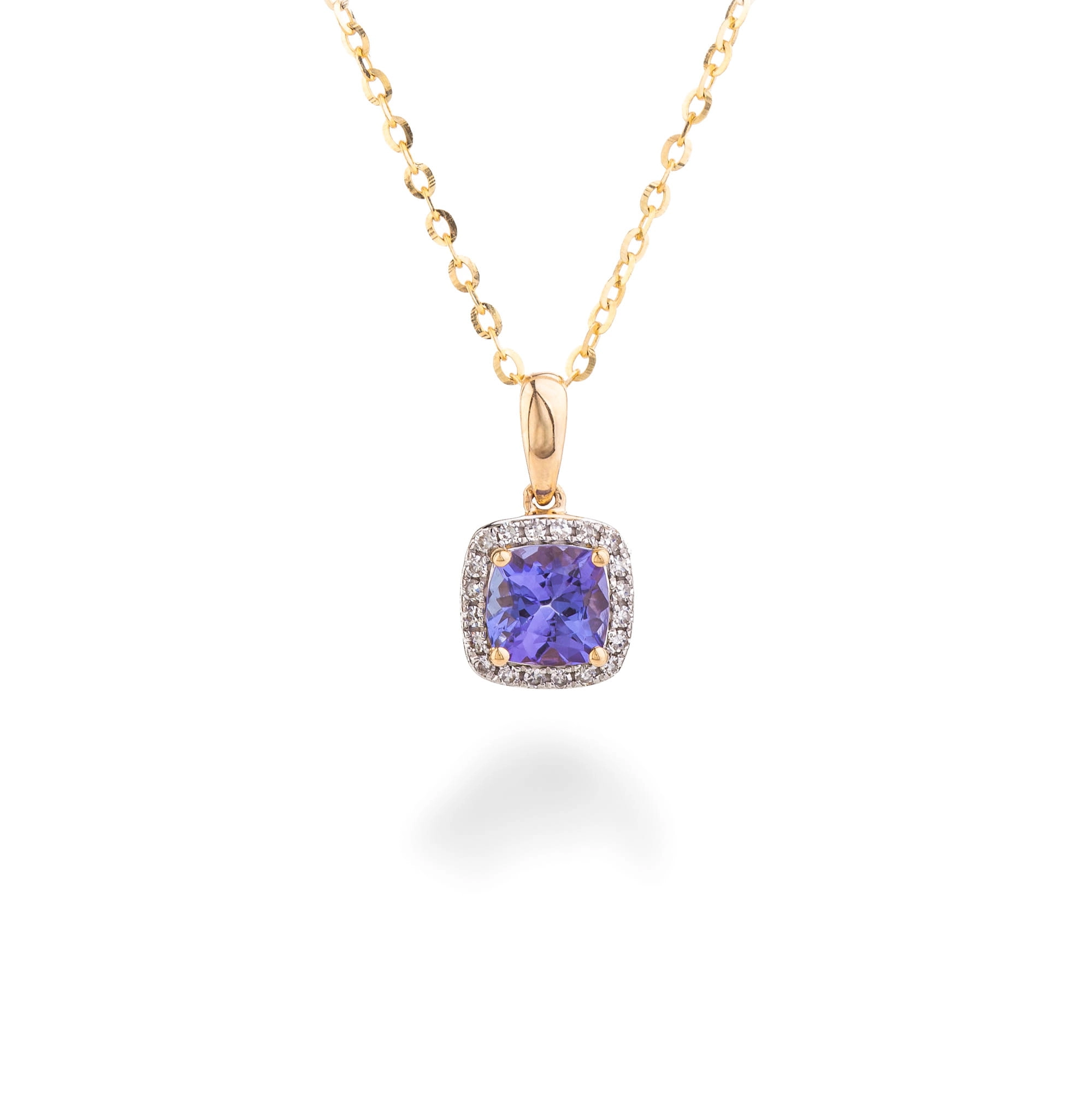 Złota zawieszka na łańcuszek z tanzanitem i diamentami - złoto 585 (14K)