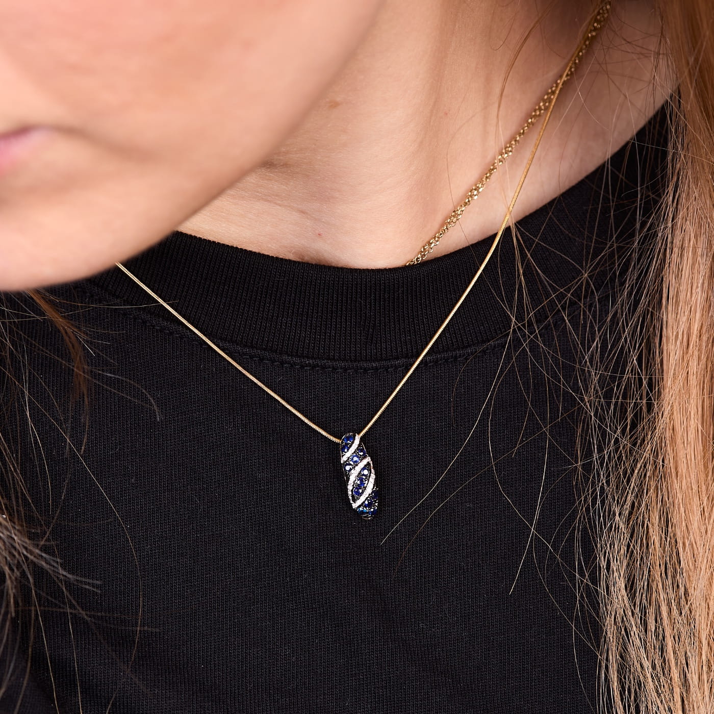Złota zawieszka p.585 szafir i brylanty (14K)