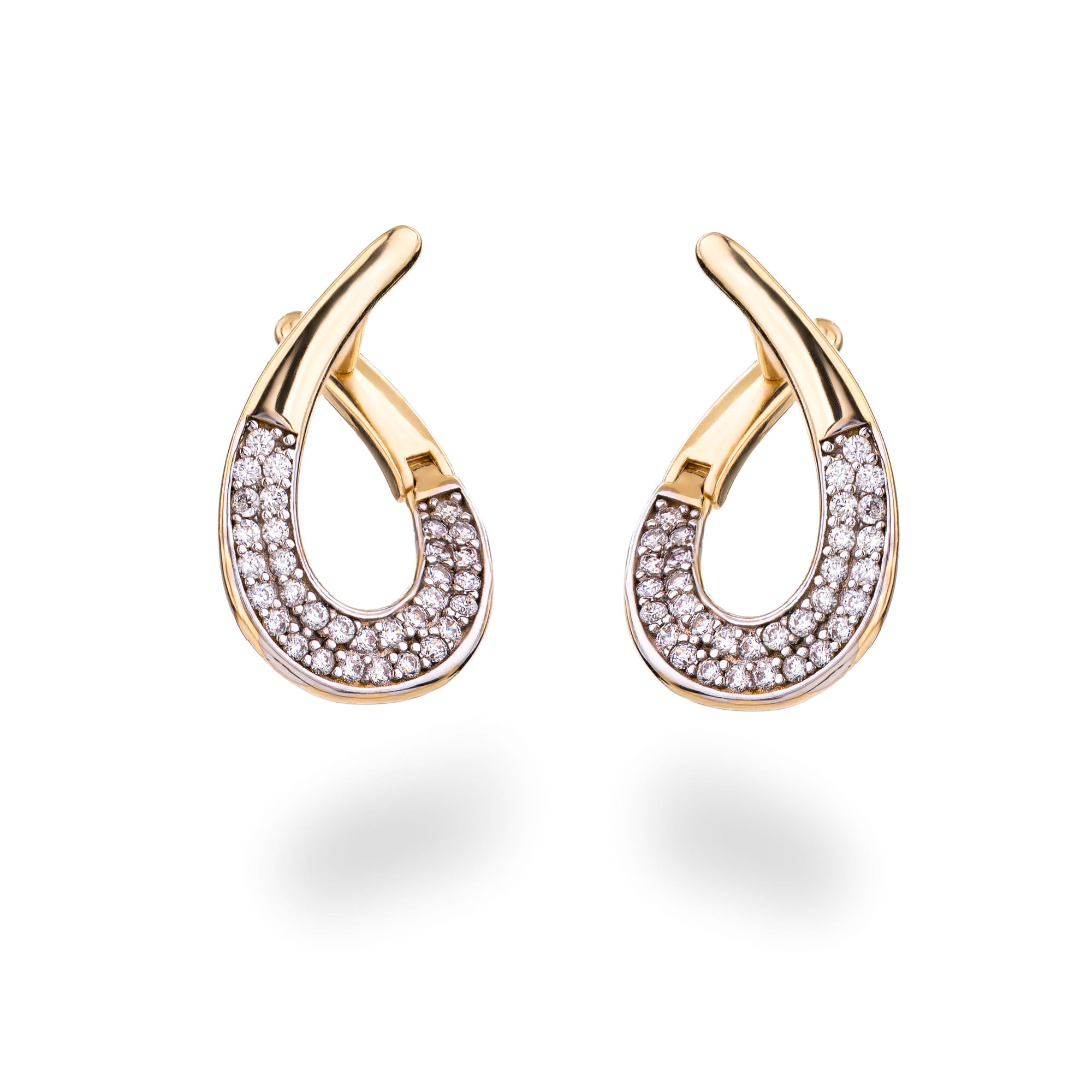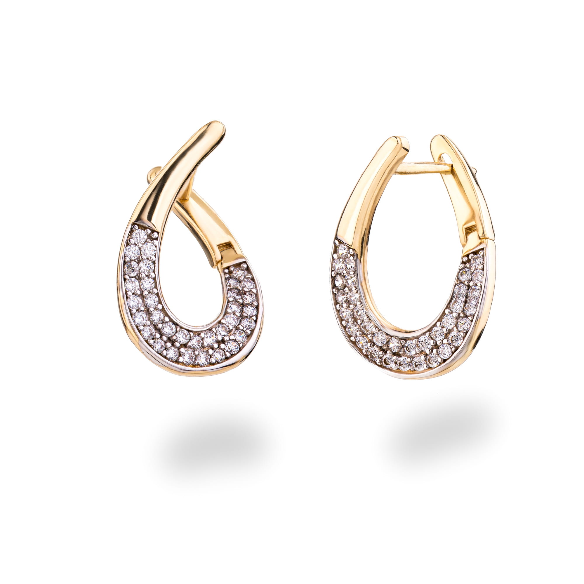 Złote kolczyki 585 łezki 3D z cyrkoniami ZŁOTO 14K zapięcie angielskie