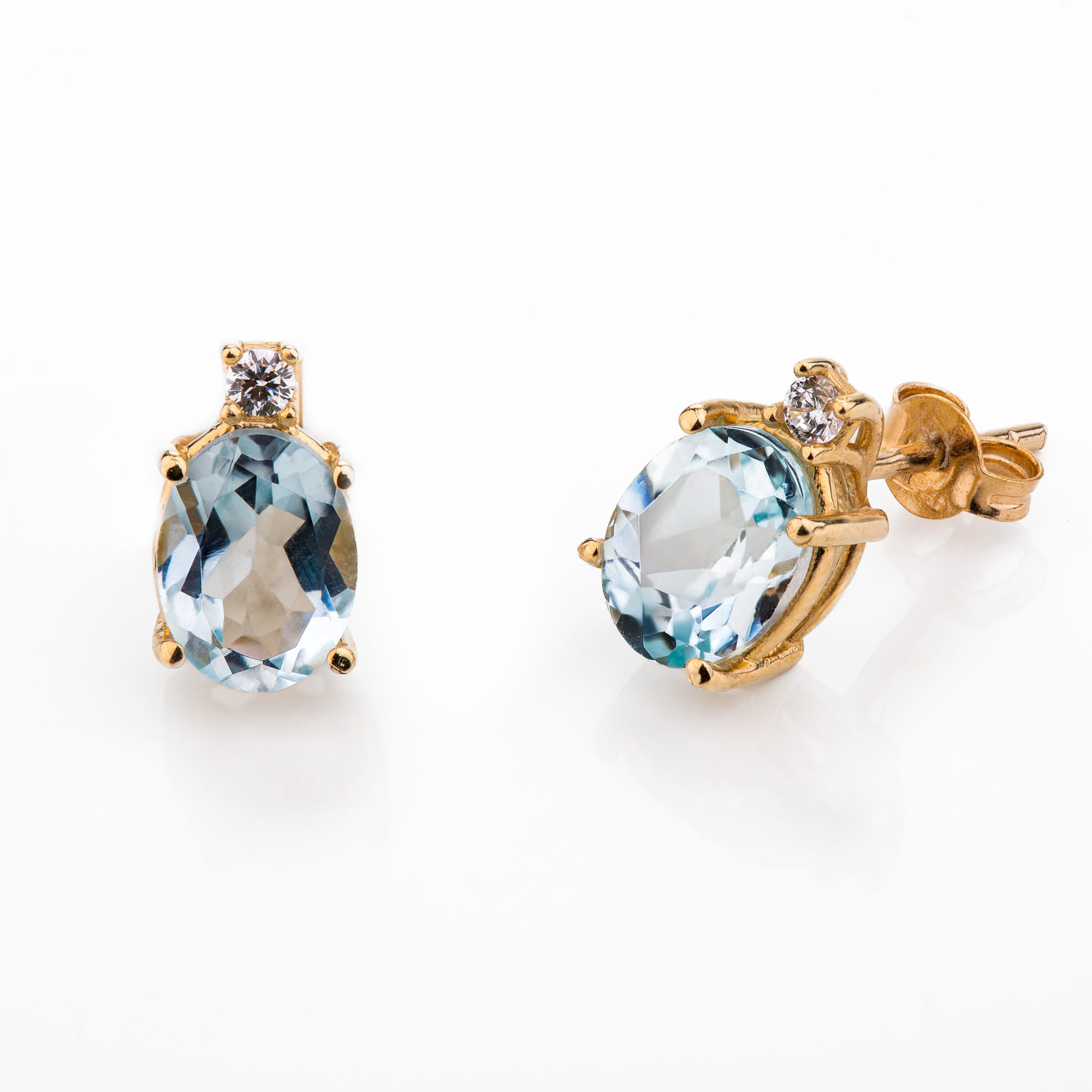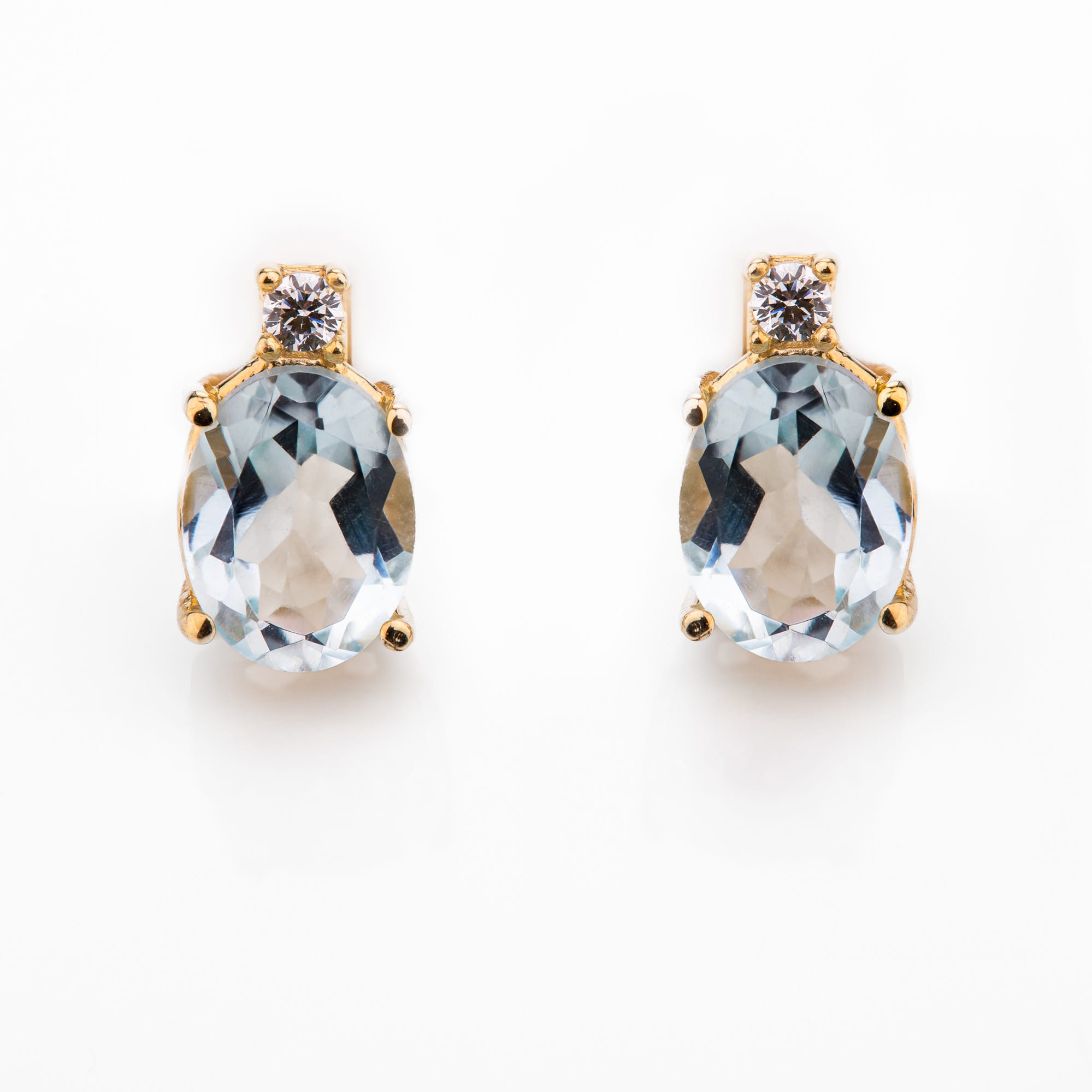 Złote kolczyki p.585 błękitna cyrkonia (14K) - na sztyfcie