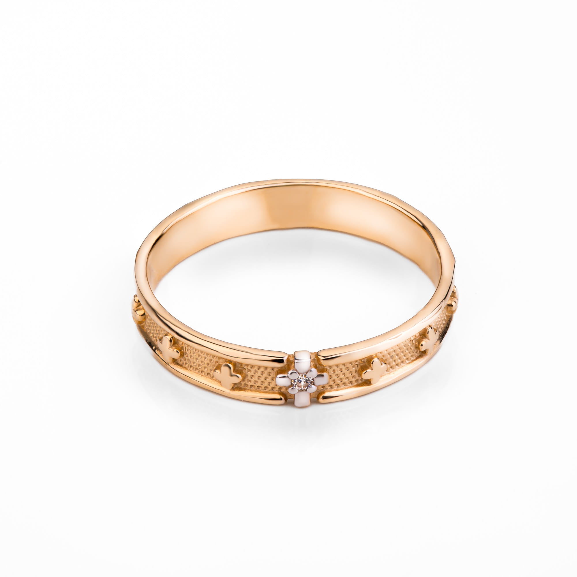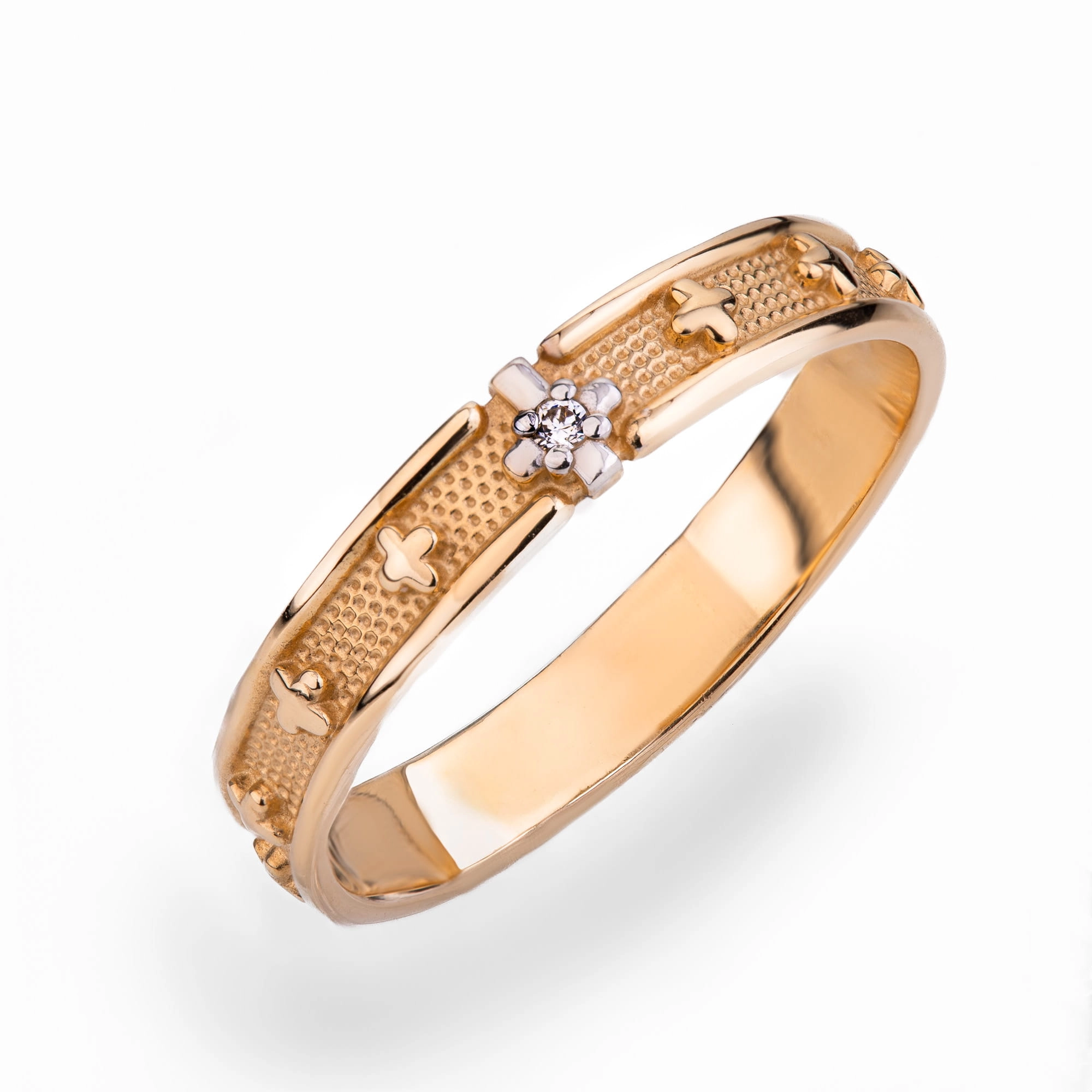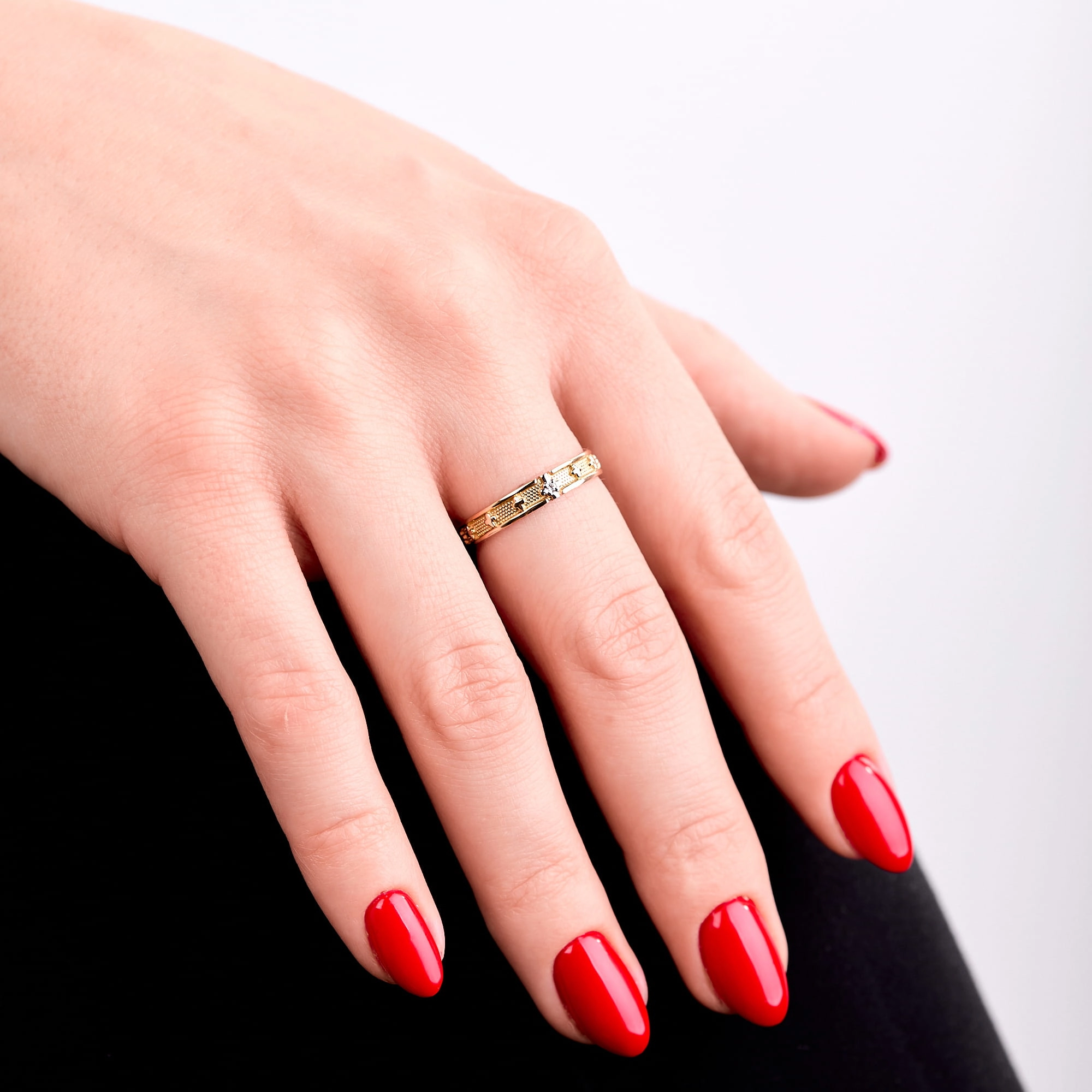 Złoty pierścionek z cyrkoniami p.585 (14K), motyw krzyżyka roz. 17
