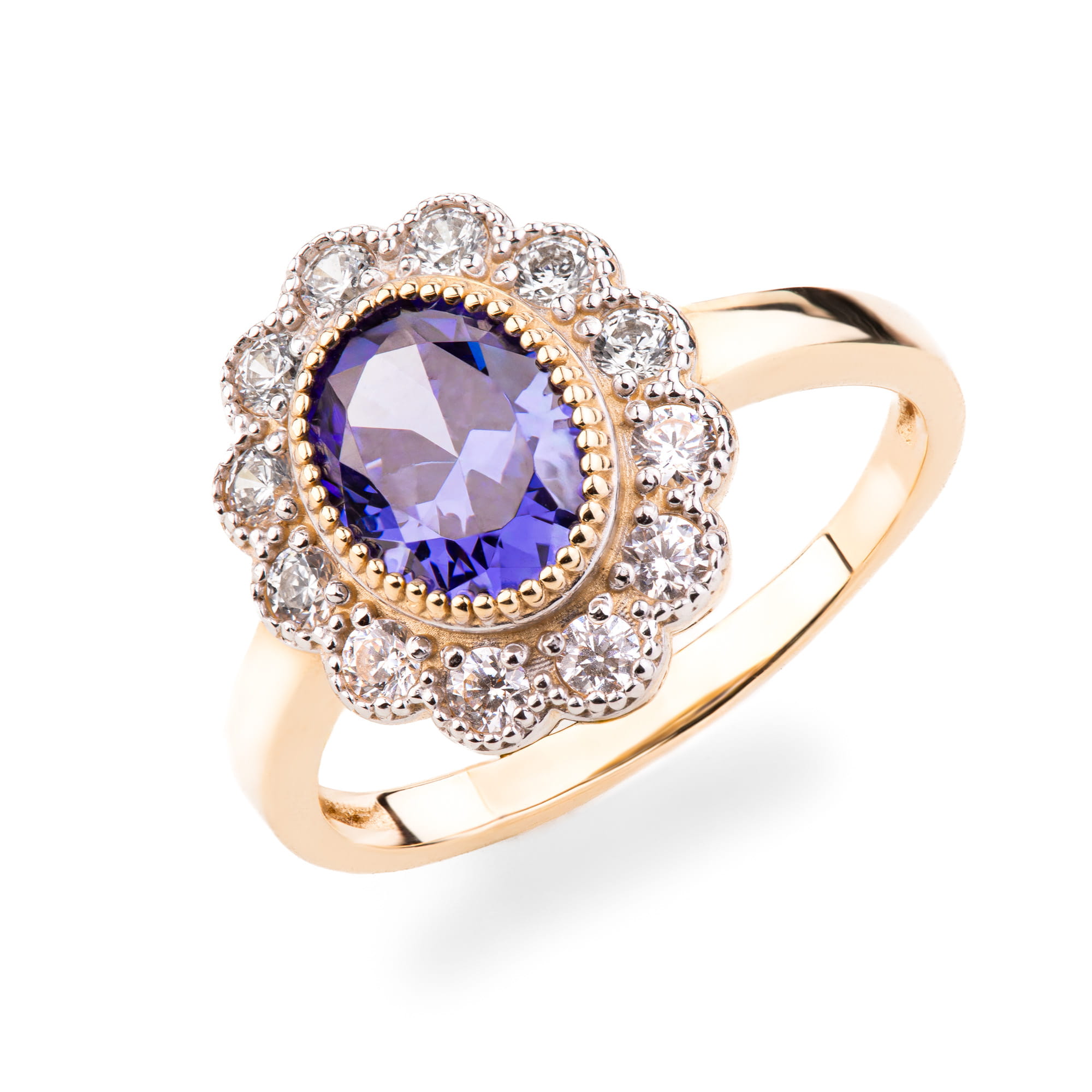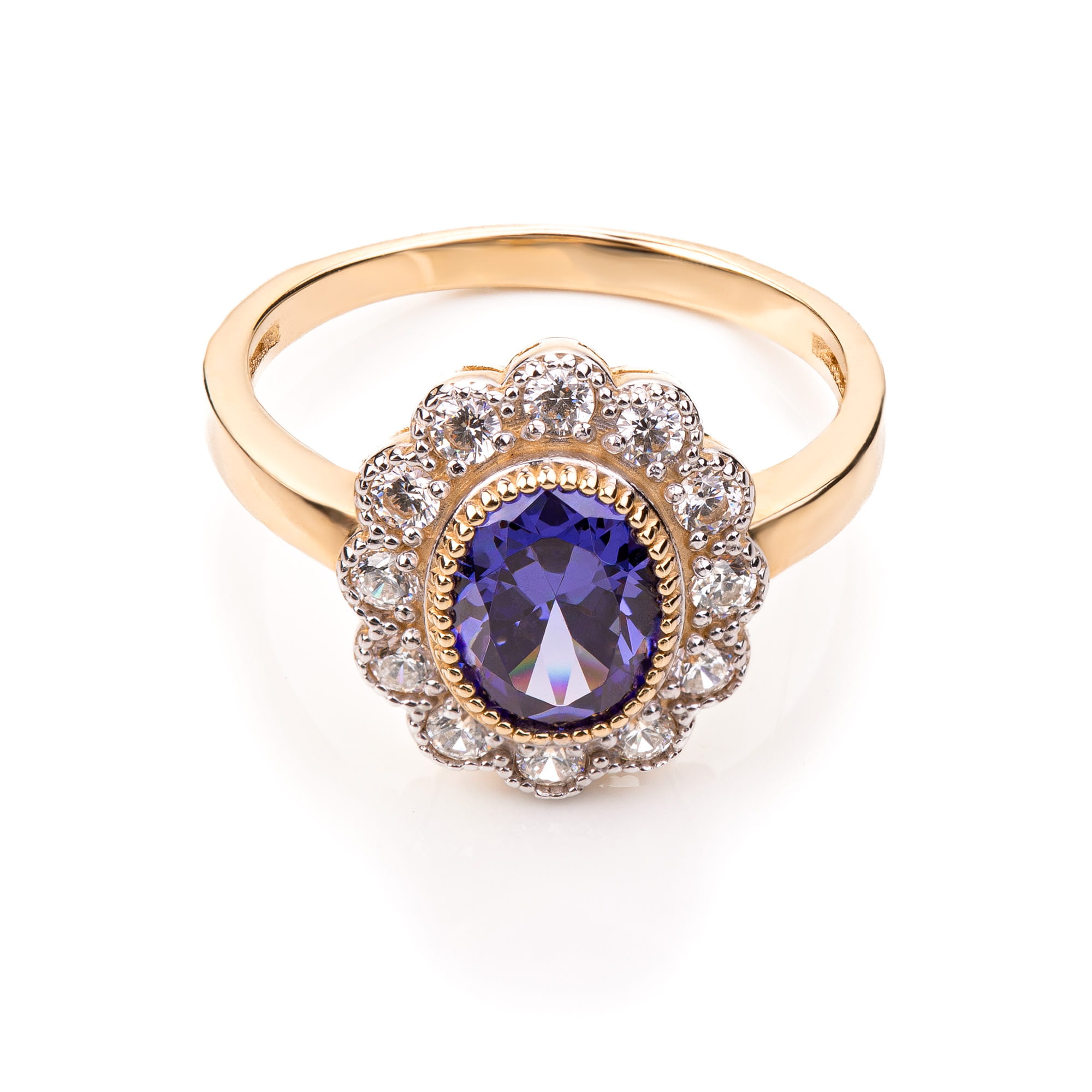 Złoty pierścionek z tanzanitem p.585 (14K), tanzanit kamień naturalny, rozmiar 15