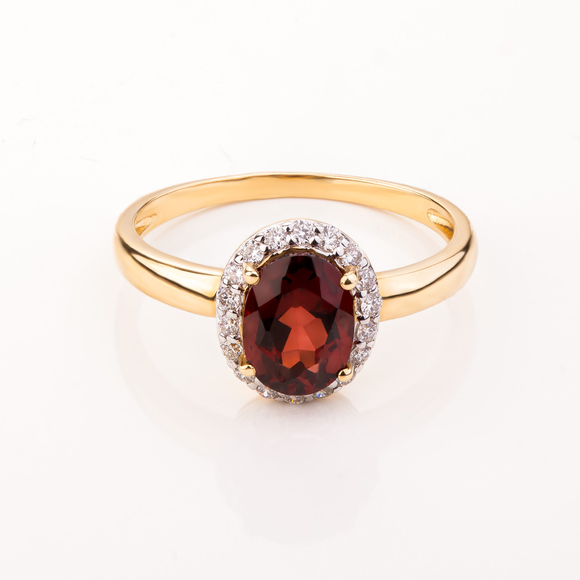 Złoty pierścionek zaręczynowy p.585 brylanty i granat (14K), rozmiar 15